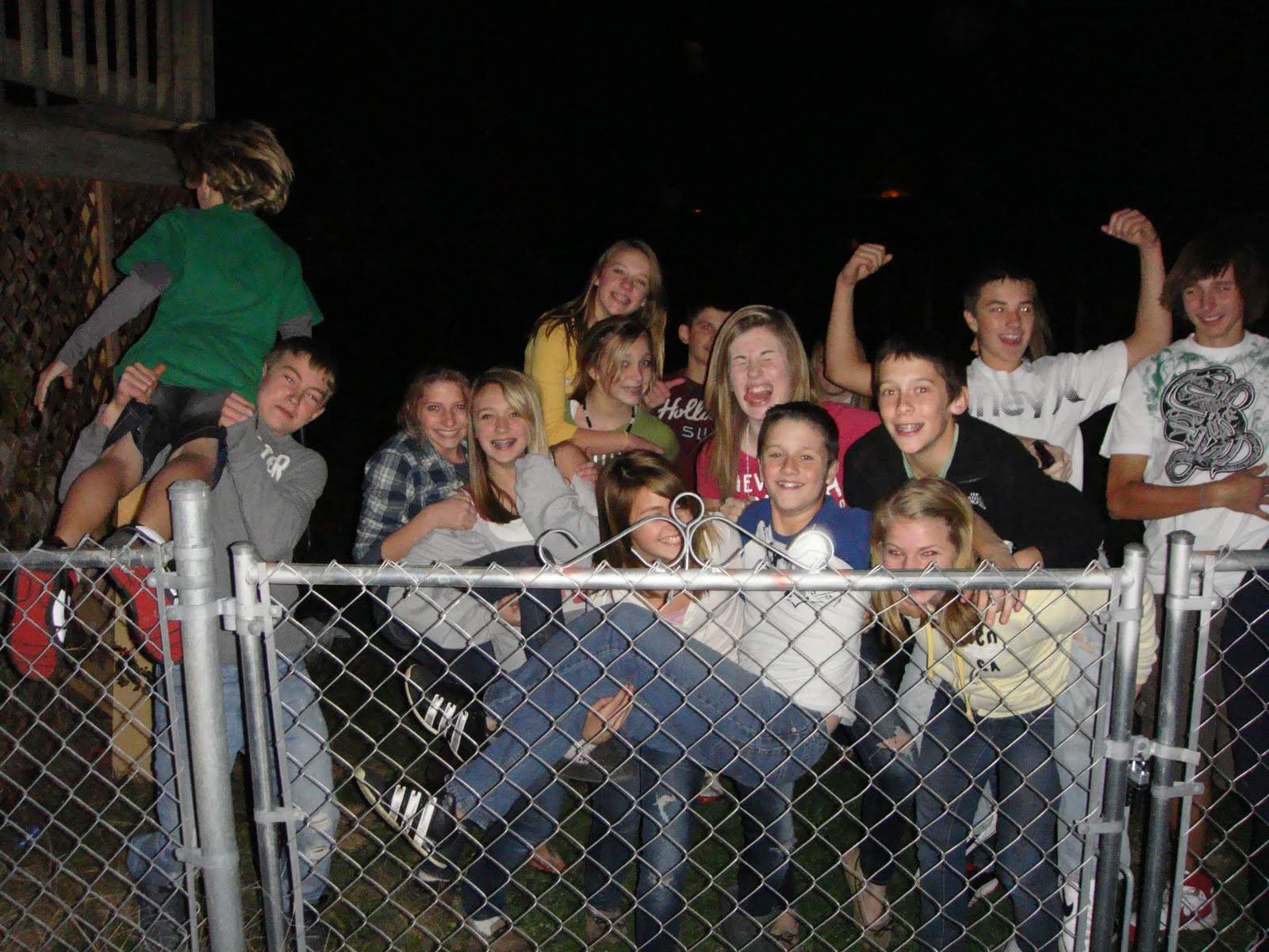 Around 8:55 we arrive to pick him up. Still only one car in the driveway so we ring the doorbell. Very quiet. The house is dark. Suddenly Ronnie said he heard kids out back so we head around the side. Next we see two boys. Ok, feeling better..Chase wasn't the only boy. The boys looked worried....so we said "hey, we're Chase's parents and we're cool", lol. Well, that must be true because the next thing we know, about 10 kids come running! It ends up there were over 40 kids at this party. Shew...glad it was them and not me, haha.